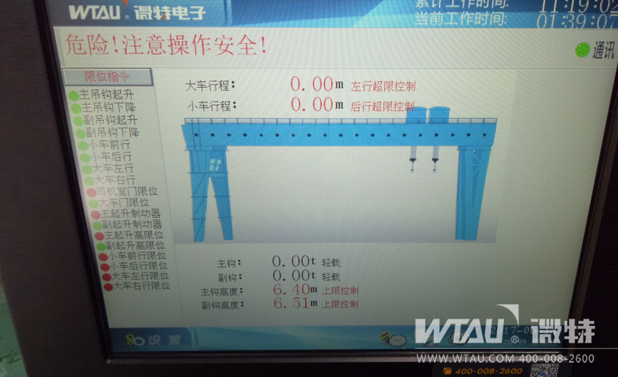 對(duì)橋機(jī)起重量、起升高度、運(yùn)行行程、機(jī)械限位、操作指令監(jiān)控