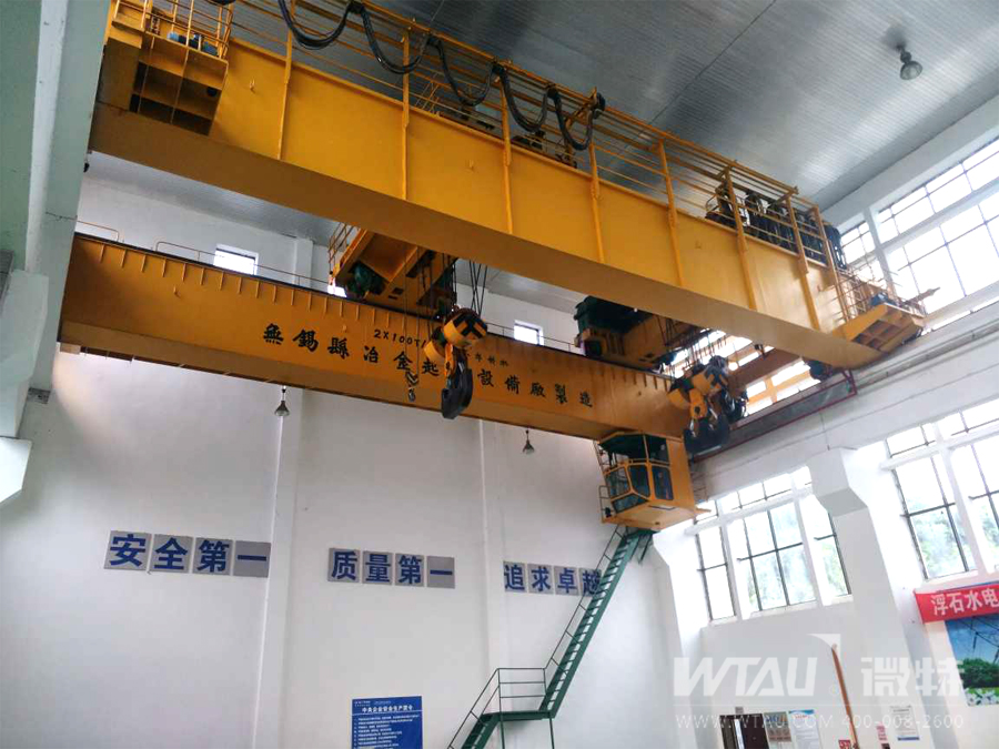 浮石電站的大型吊裝設(shè)備有廠房2×100/25T橋機(jī)一臺(tái),主要用于日常廠房設(shè)備及轉(zhuǎn)子吊裝;尾水2×63T/10T門機(jī)一臺(tái),主要用于尾水閘門吊裝。