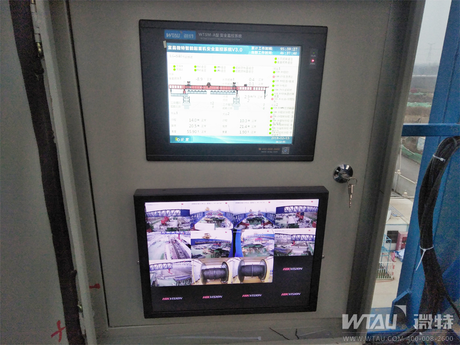 此次施工現(xiàn)場為鄭州四環(huán)繞城高架,由于工期緊張,微特技術(shù)售后安裝人員在架橋機(jī)拼裝尾期就來到了現(xiàn)場與聯(lián)東技術(shù)人員做技術(shù)交流。配裝的WTMS-A安全監(jiān)控系統(tǒng)滿足國家標(biāo)準(zhǔn)對大型吊裝設(shè)備安全監(jiān)控的要求,具有常用的通訊接口,有獨(dú)立并可擴(kuò)展的I/O功能。整機(jī)數(shù)據(jù)采用Modbus或Profibus通訊,對起重設(shè)備具有實(shí)時監(jiān)控、動態(tài)顯示、聲光顯示、數(shù)據(jù)備份以及密碼保護(hù)等功能,且該系統(tǒng)自身具有抗干擾性強(qiáng),操作界面好,通用性強(qiáng)等優(yōu)點(diǎn)。通過一周的安裝調(diào)試,微特WTSM-A安全監(jiān)控系統(tǒng)通過特檢單位驗(yàn)收并獲得用戶好評。