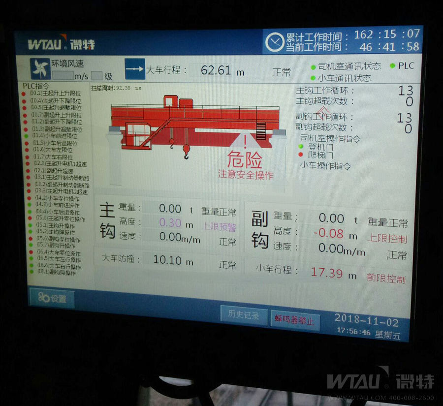 圖為現(xiàn)場配備的微特WTSM-A型冶金吊監(jiān)控系統(tǒng)