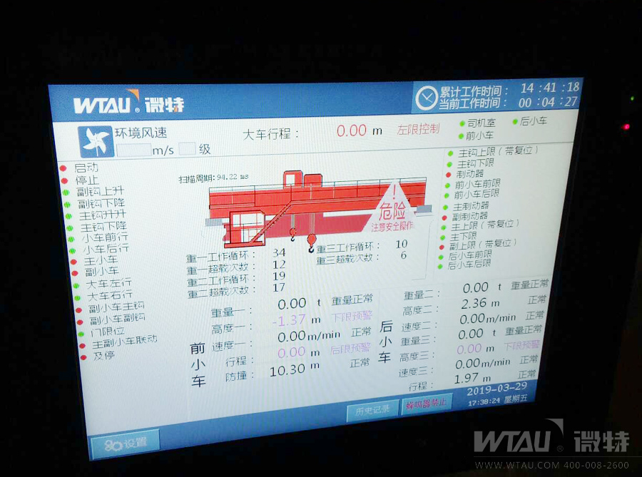 ▲微特WTSM-A型橋式起重機(jī)安全監(jiān)控系統(tǒng)主機(jī)顯示屏