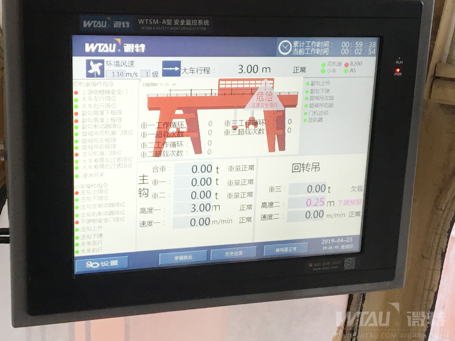 ▲WTSM-A型監(jiān)控主機(jī)監(jiān)控畫面及水下抓梁穿銷的監(jiān)控畫面