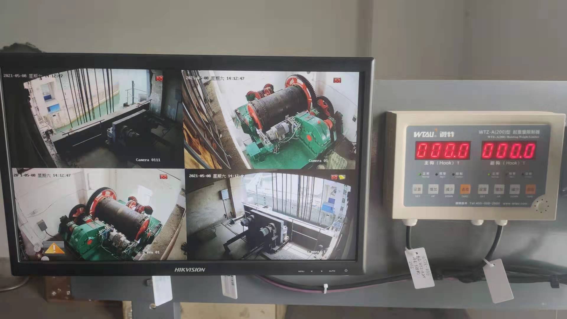 經(jīng)過微特技術(shù)人員和客戶商定采用無線網(wǎng)橋來進(jìn)行數(shù)據(jù)傳輸。本次安裝WTSM-A型的監(jiān)控系統(tǒng),可實(shí)時(shí)監(jiān)控起重機(jī)的吊鉤高度、重量等,亦可實(shí)時(shí)記錄和顯示起重機(jī)的操作指令限位等數(shù)據(jù)。