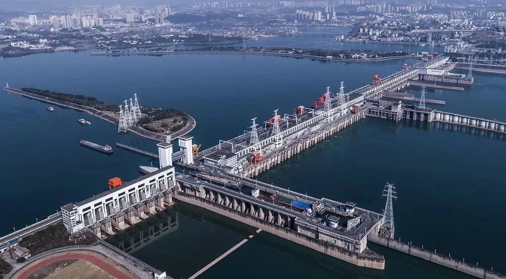 葛洲壩壩型為閘壩,最大壩高47米,總庫容15.8億立方米??傃b機(jī)容量271.5萬千瓦,其中二江水電站安裝2臺(tái)17萬千瓦和5臺(tái)12.5萬千瓦機(jī)組;大江水電站安裝14臺(tái)12.5萬千瓦機(jī)組。年均發(fā)電量140億千瓦時(shí)。電站以500千伏和220千伏輸電線路并入華中電網(wǎng),并通過500千伏直流輸電線路向距離1000公里的上海輸電120萬千瓦。