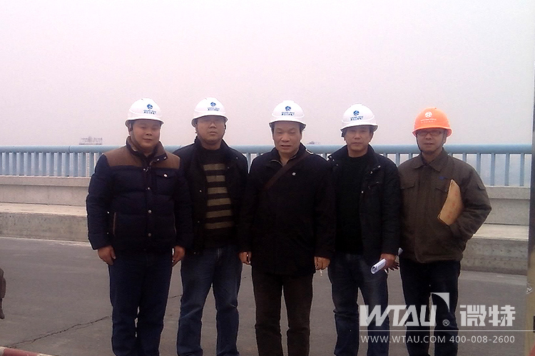 圖中從左至右:微特技術(shù)工程師:周貴波、特檢院起重一室陳主任、特檢院胡院長、特檢院起重一室李主任、丹江口電廠生技部侯主任。