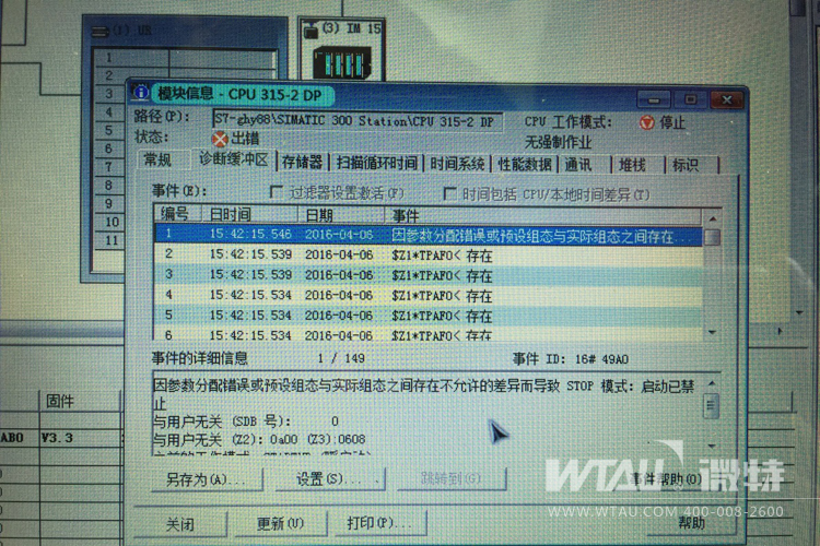 經(jīng)過(guò)勘察該門機(jī)采用西門子S7-300系列PLC,投運(yùn)時(shí)間已近十年,工程師采用排除法逐個(gè)對(duì)相關(guān)模塊進(jìn)行檢查,經(jīng)過(guò)一天一夜的不懈努力終于找到故障原因。原來(lái)是PLC控制系統(tǒng)中一個(gè)模塊異常導(dǎo)致的整個(gè)門機(jī)系統(tǒng)的癱瘓。找到原因也就知道如何解決故障了,很快一個(gè)新的模塊換上去了,幾番調(diào)試,門機(jī)系統(tǒng)終于正常了。