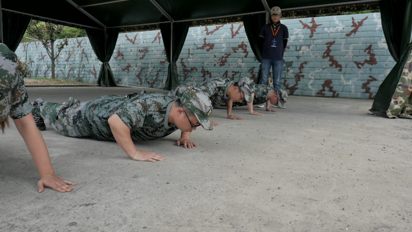 在成果匯報(bào)演練過(guò)程中,所有隊(duì)伍在細(xì)節(jié)方面均出現(xiàn)遺漏。初次成果匯報(bào)演練全軍覆沒,均被判定為不合格。教官認(rèn)定為團(tuán)隊(duì)錯(cuò)誤,要求各隊(duì)隊(duì)長(zhǎng)與指導(dǎo)員在每位隊(duì)員前做10個(gè)俯臥撐并對(duì)隊(duì)員說(shuō):請(qǐng)你認(rèn)真一點(diǎn)!此次,隊(duì)長(zhǎng)和指導(dǎo)員各自領(lǐng)到了140到160個(gè)俯臥撐。