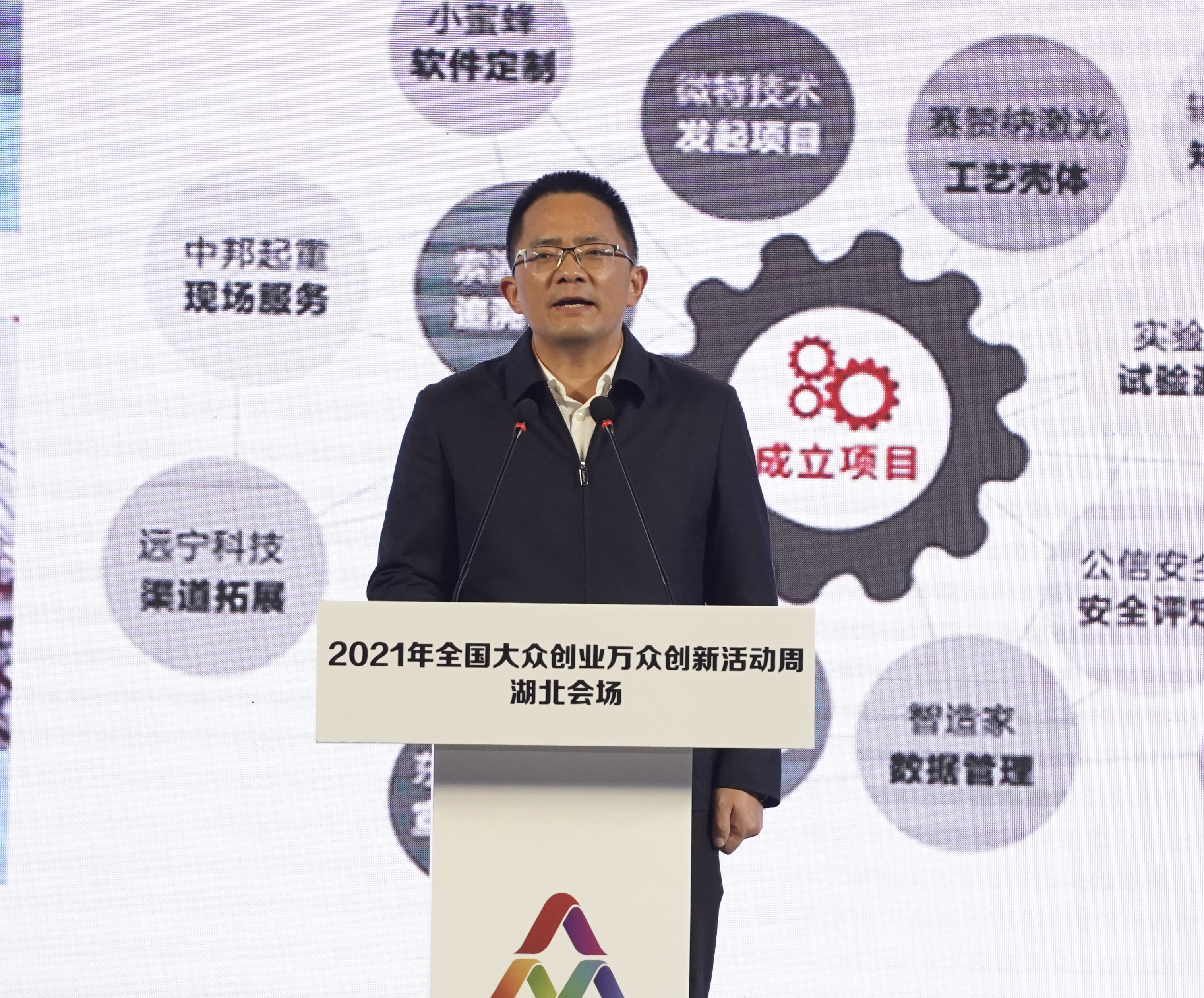2021年10月19日下午15:00,以“高質(zhì)量創(chuàng)新創(chuàng)造,高水平創(chuàng)業(yè)就業(yè)”為主題的“2021年全國大眾創(chuàng)業(yè)萬眾創(chuàng)新活動周”湖北分會場正式啟動,中共中央政治局常委、國務院總理李克強在北京人民大會堂出席2021年全國大眾創(chuàng)業(yè)萬眾創(chuàng)新活動周,發(fā)表重要講話,并宣布活動周正式啟動?;顒硬扇【€上線下相結(jié)合方式舉辦,全方位、多渠道、立體式呈現(xiàn)湖北省大眾創(chuàng)業(yè)萬眾創(chuàng)新作為新成效,營造良好的創(chuàng)業(yè)創(chuàng)新氛圍。