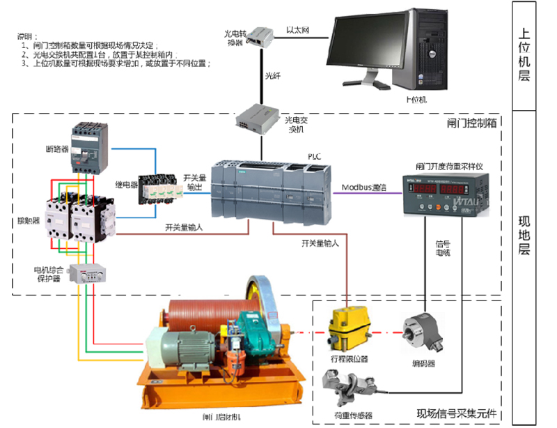 可接收遠(yuǎn)方調(diào)度的命令,對(duì)閘門進(jìn)行自動(dòng)控制和調(diào)節(jié)。