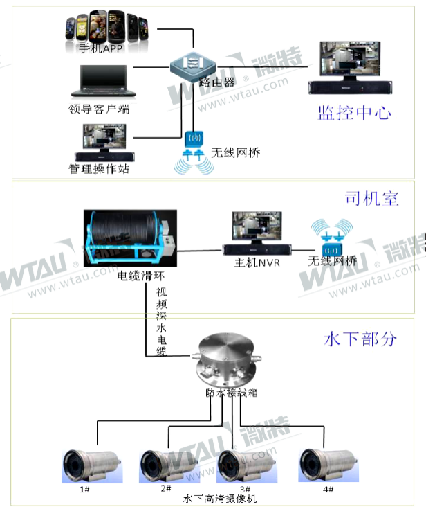WTDC型網(wǎng)絡高清水下監(jiān)視系統(tǒng)拓撲圖