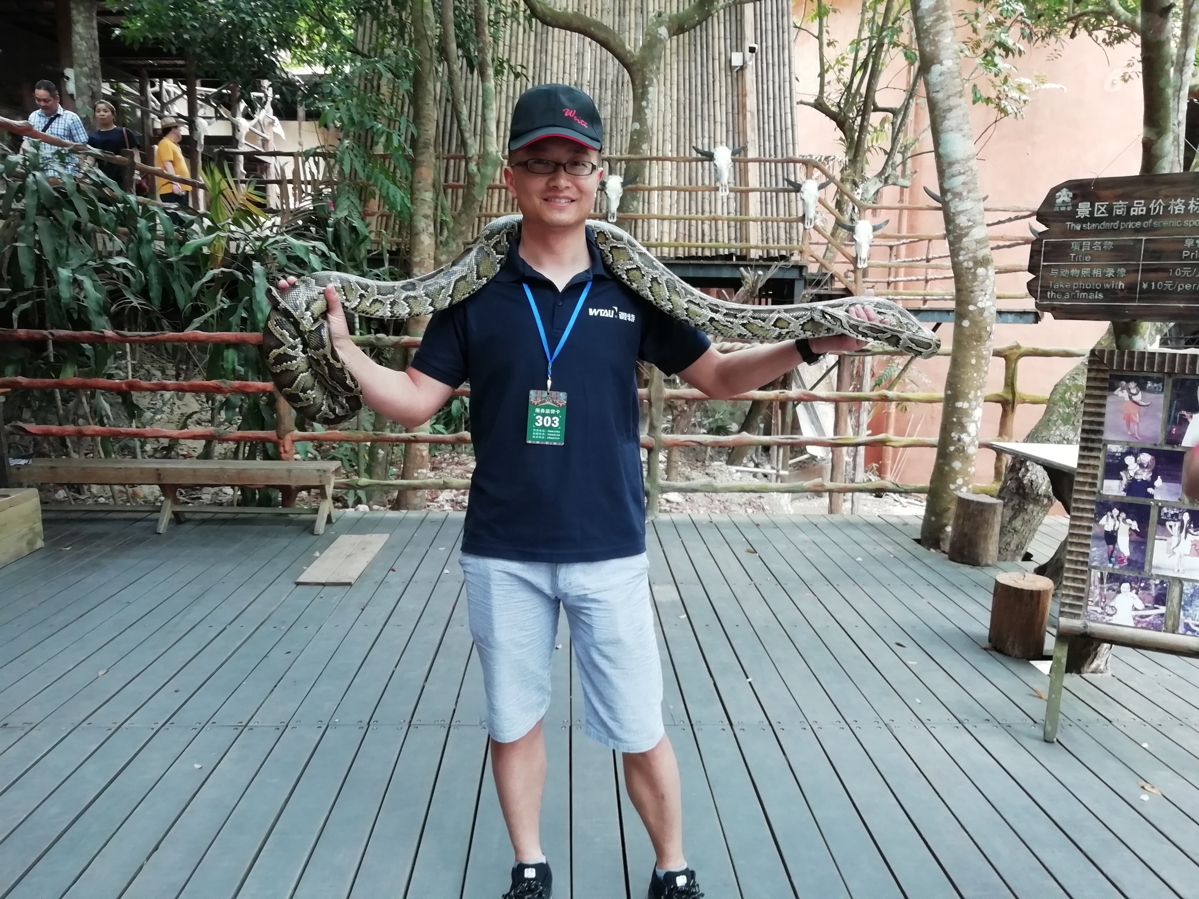 ▲研發(fā)的謝大膽跟苗族蟒蛇的合影