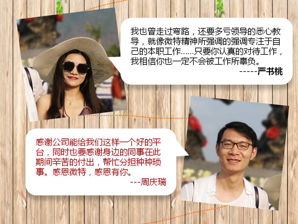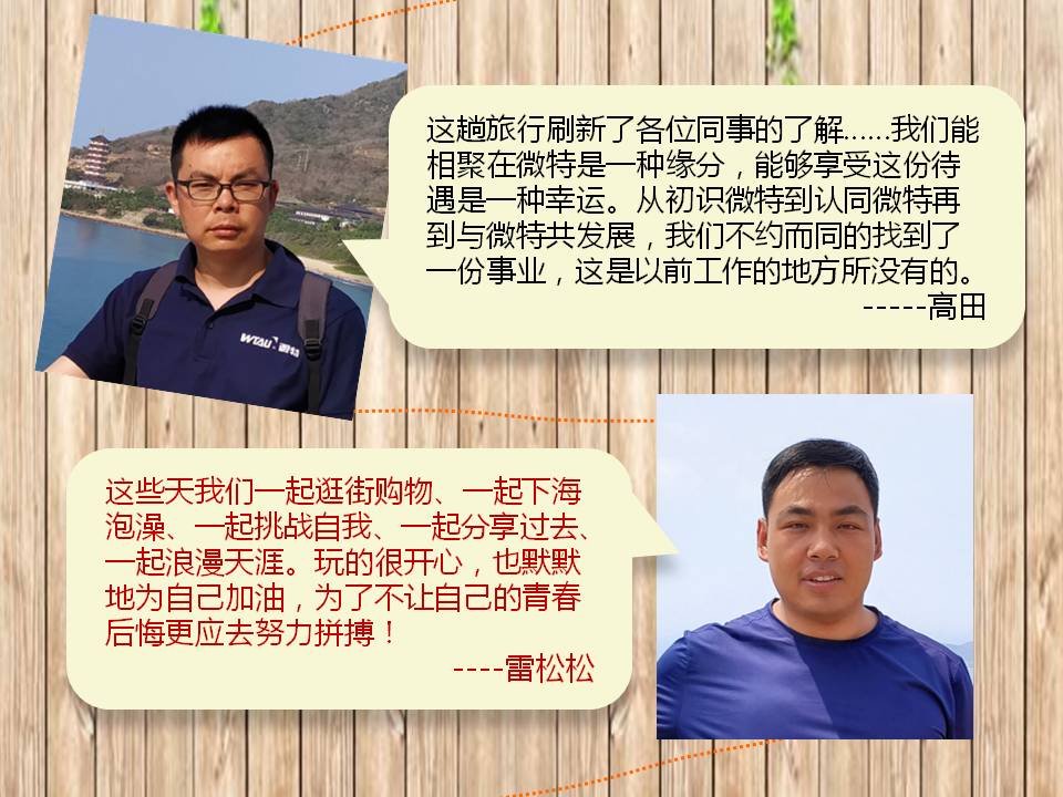 微特為2018年工作表現(xiàn)優(yōu)秀的15名員工給出了特別驚喜的獎(jiǎng)勵(lì)-雙飛6日海南游獎(jiǎng)勵(lì),很有幸也很高興本次被評(píng)為優(yōu)秀員工,非常感謝公司領(lǐng)導(dǎo)的多年的培養(yǎng),同時(shí)也給了我們更大的鼓勵(lì)和激勵(lì),促使我們更加努力更快的成長(zhǎng),干出更大的成就!