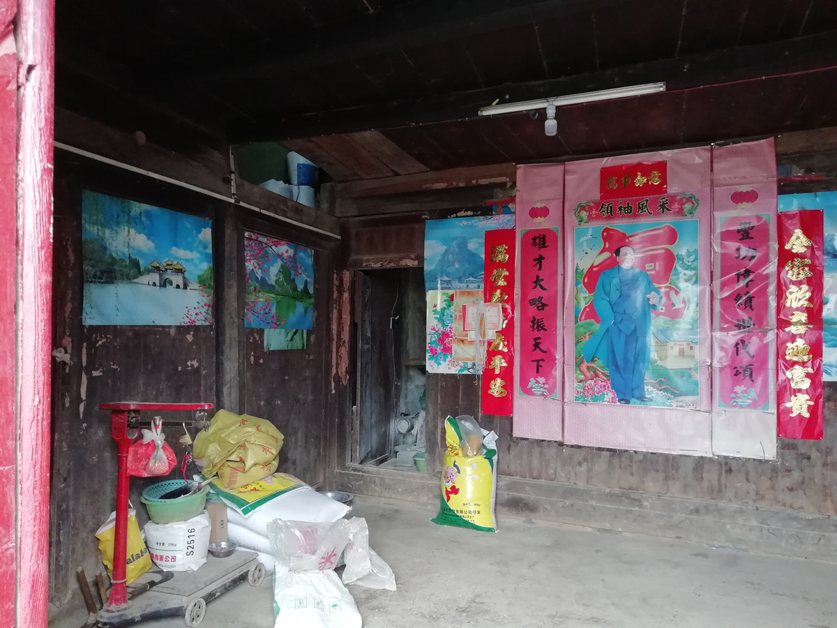 小邱家的院子,左側(cè)是三間豬圈,地上曬著木瓜,往前走便是主屋。主屋里的中堂掛著毛主席的畫像,兩側(cè)貼滿的小邱同學(xué)上學(xué)期間的獎狀。