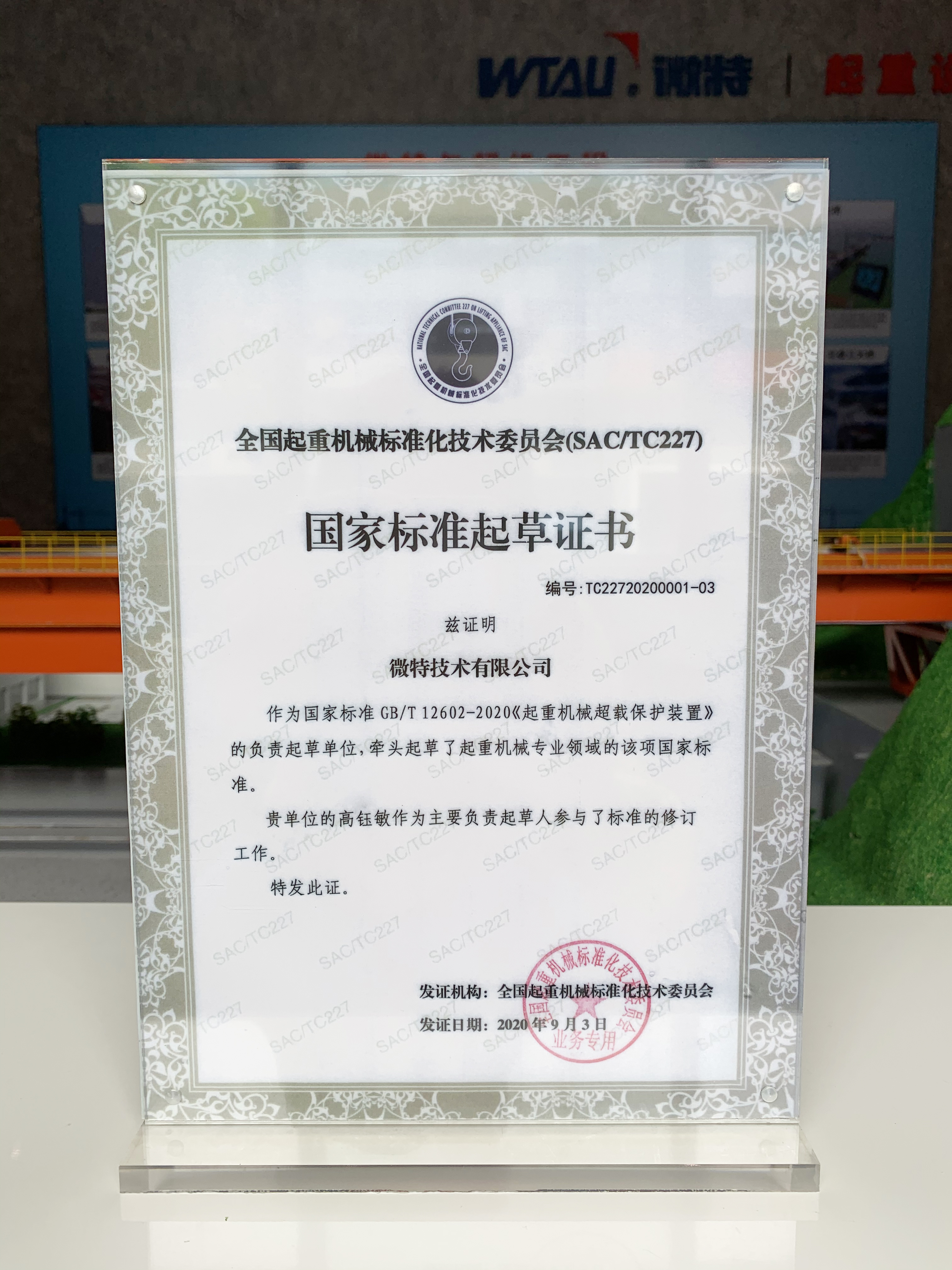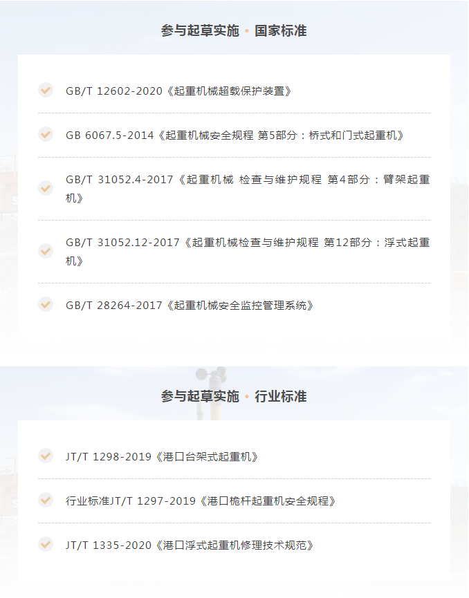 2019年9月微特當選全國起重機標委會臂架分會委員會委員。2020年10月1日由微特牽頭起草的國家標準GB/T 12602-2020《起重機械超載保護裝置》正式實施,這也是微特參與起草并發(fā)布實施的第5項國家標準。截止到目前微特先后參與了20多項國家標準的起草,其中5項國家標準及3項行業(yè)標準已頒布實施。